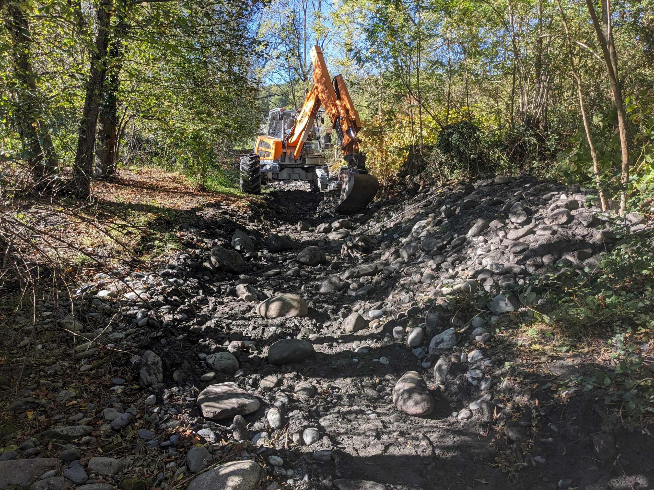 Le profil en long ayant une pente très faible nous avons travaillé au laser et avons recréer après terrassement un lit naturel.